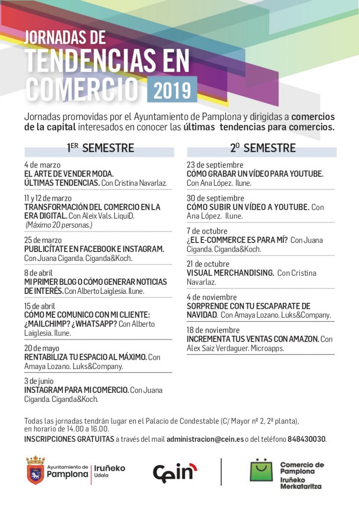 El Ayuntamiento de Pamplona ha promovido para este año, en colaboración con CEIN, 13 jornadas dirigidas a comercios de la capital en las que se van a presentar las últimas tendencias, centrándose principalmente en fomentar la digitalización de sus negocios.